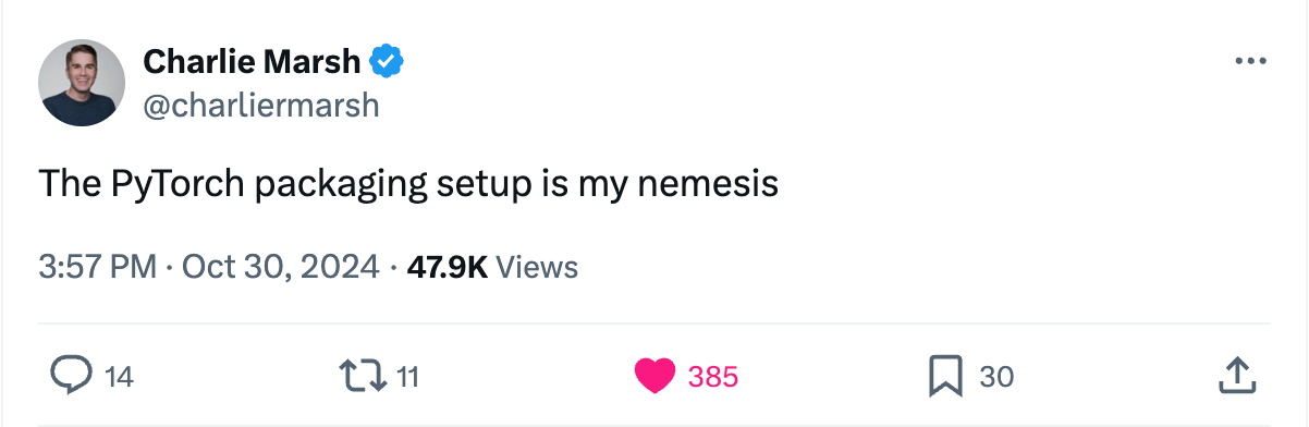 这篇文章将重点关注 wheel 变体试图解决的问题,以及它们如何影响 PyTorch 打包(以及整个 Python 打包)生态系统的未来。