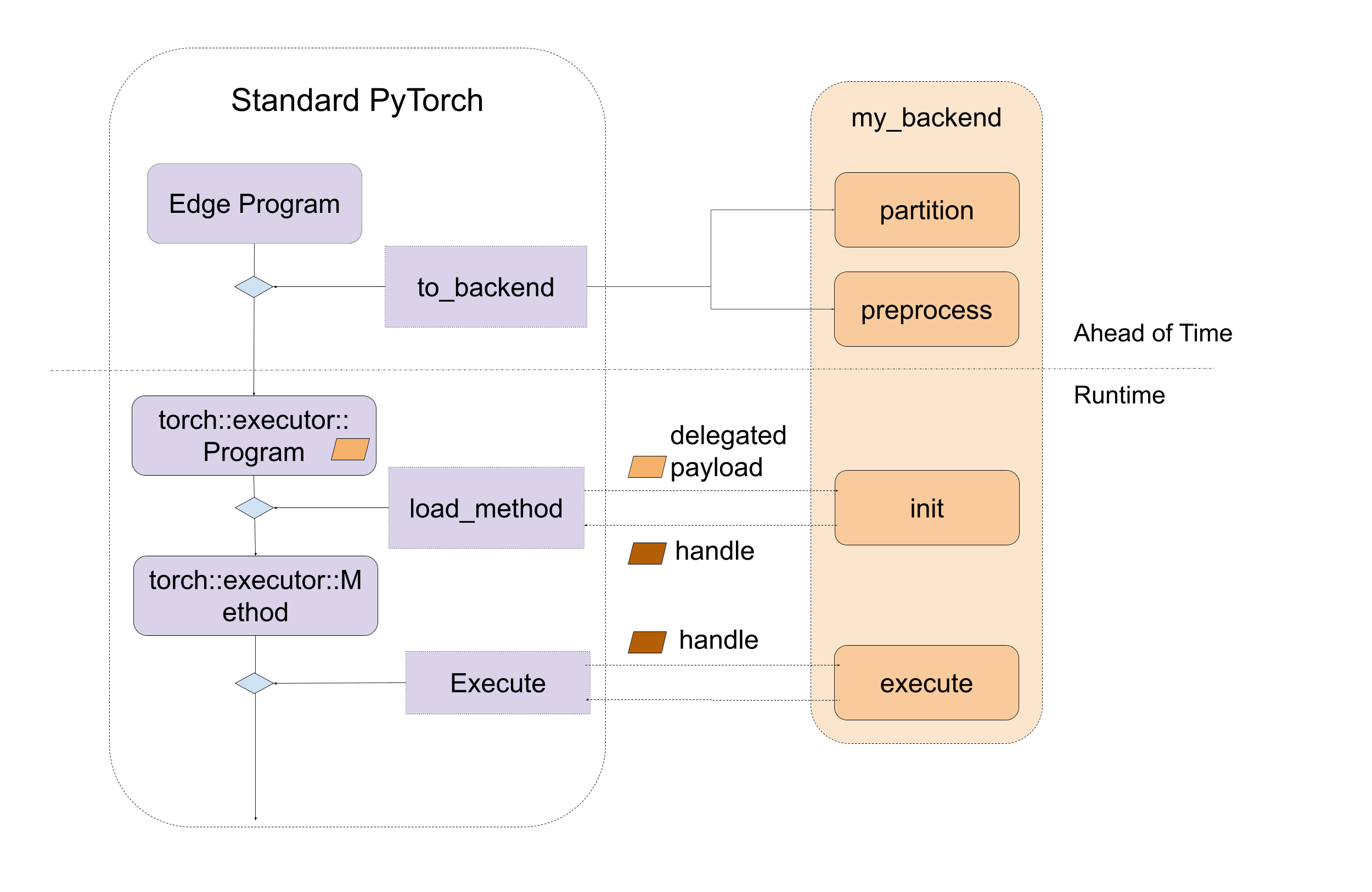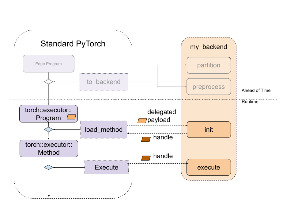 图 3. 标准 ExecuTorch 运行时与后端入口点的关系。